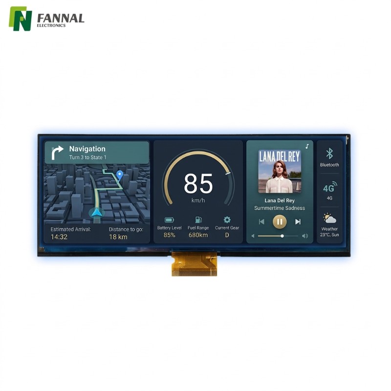 Le format ultra-large rend l’affichage adapté aux tableaux de bord numériques et aux groupes d’instruments des véhicules modernes.